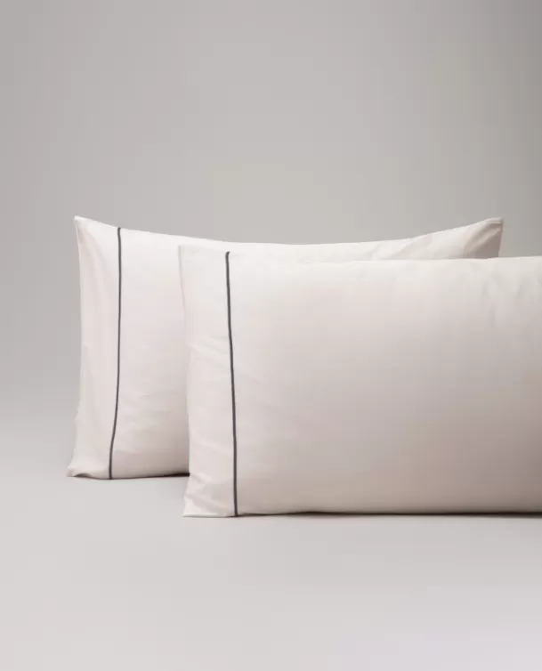 Las fundas de almohada tejidas en algodón egipcio de 400 hilos y su sutil bordado artesanal, hacen de este tejido un básico elegante. Gracias a la composición en algodón egipcio de fibra larga y la suavidad del satén, su tacto evoca una sensación de tranquilidad y acogimiento muy especial.